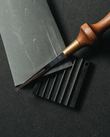 Elevate your leatherworking precision with our Metal Edge Beveler Sharpening Jig, featuring six curved spines to accommodate various edge beveler sizes.