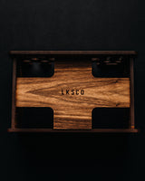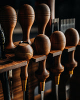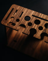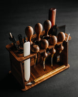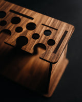 The Half Pint leathercraft tool organizer is the perfect addition to any leatherworker's workspace. Crafted from walnut veneer MDF, this tool rack is perfect for storing and organizing all of your essential tools. Each rack comes with 19 tool slots plus a storage space on the bottom and magnetic needle holder. This tool organizer is a great way to keep your tools organized and within reach.